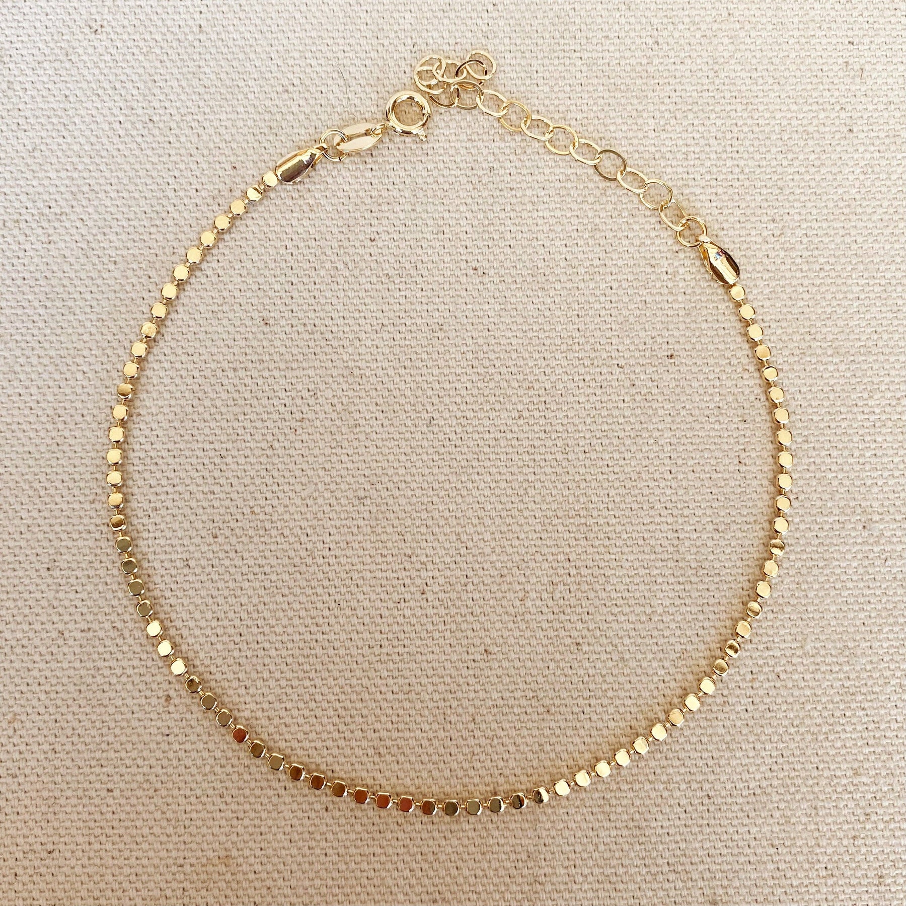 18k Gold Filled 2.0mm Flat Ball Chain Anklet * Metal: 18k Gold Filled * Measures 11 inches long * Weights 2.6 grams * Hypoallergenic jewelry - Nickel Free * Water resistant