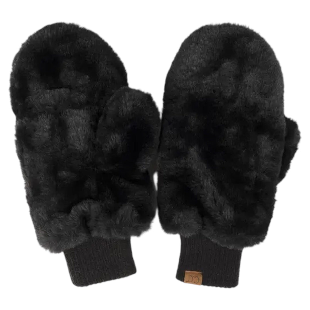 Black CC Faux Fur Touchscreen Accessible Mittens