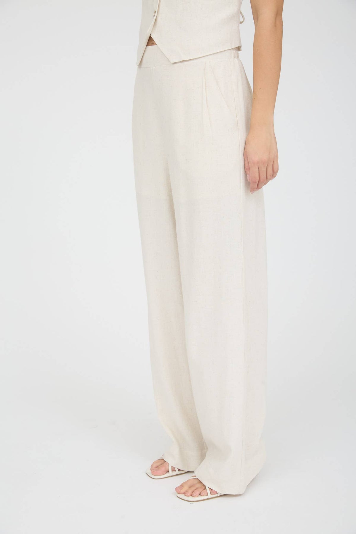 Oatmeal Wide Leg Linen Pants