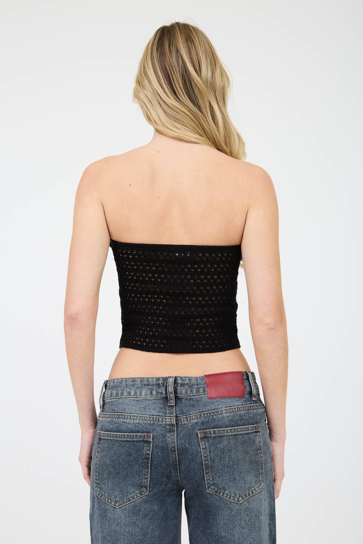 Black Strapless Crochet Top