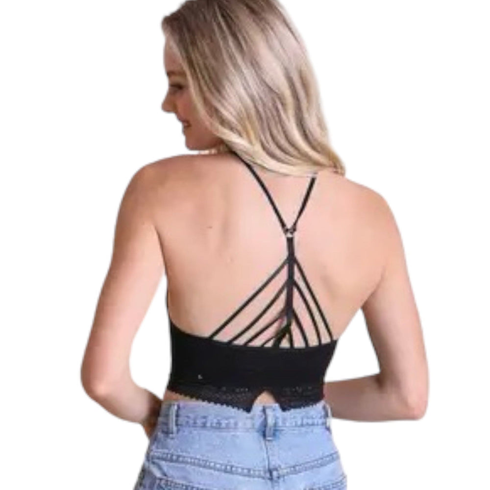 High Neck Crochet Lace Trim Bralette
