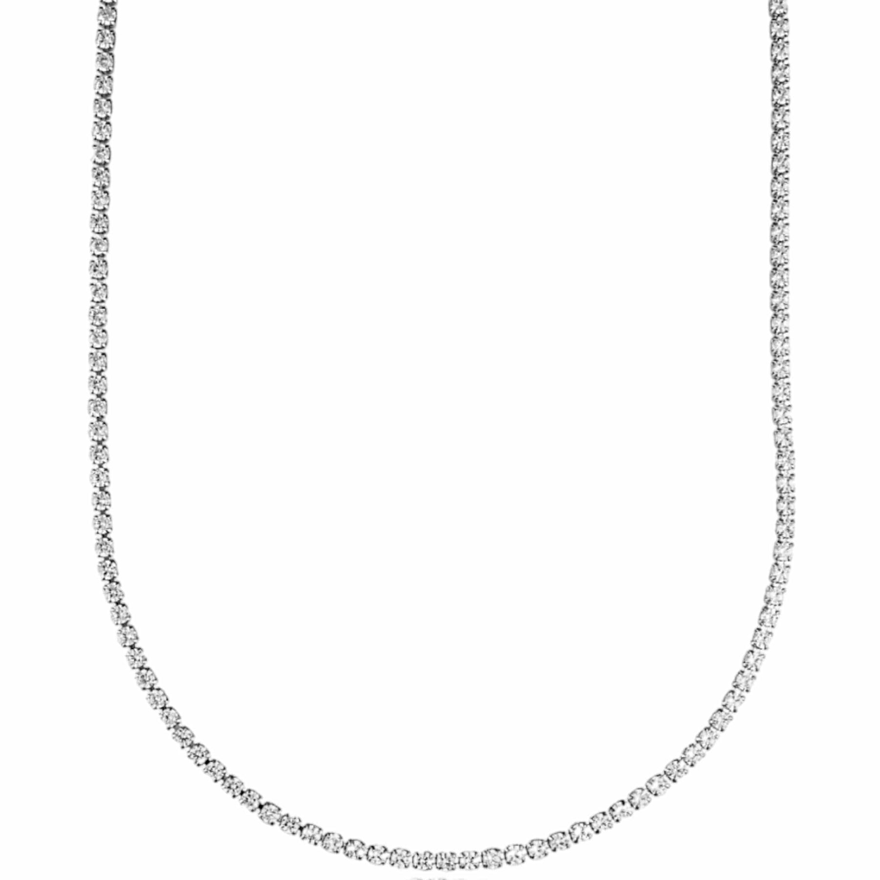 2mm Tennis Necklace Choker- Silver and Gold Available Description: * Material: 18K Gold Filled * Length: 13 3/4' Inch +2' Inch Extender * Thickness: 2.10mm * Color: Gold and Rhodium