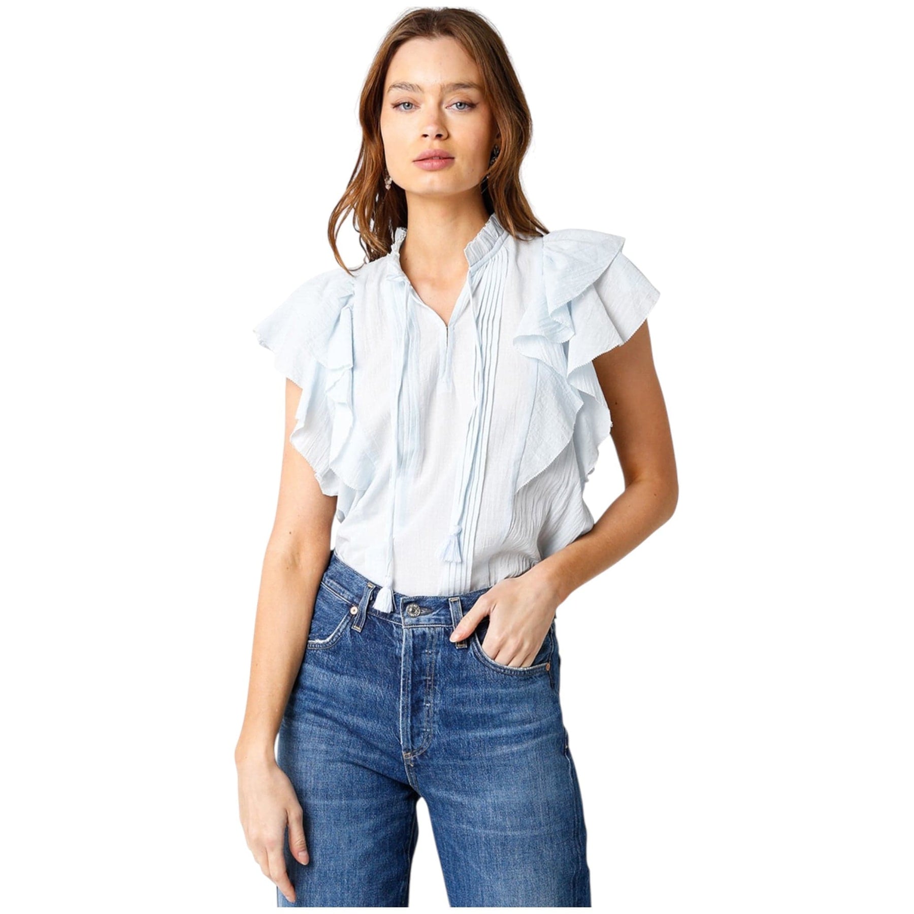 Baby Blue Blouse with Ruffle Shoulder Detail