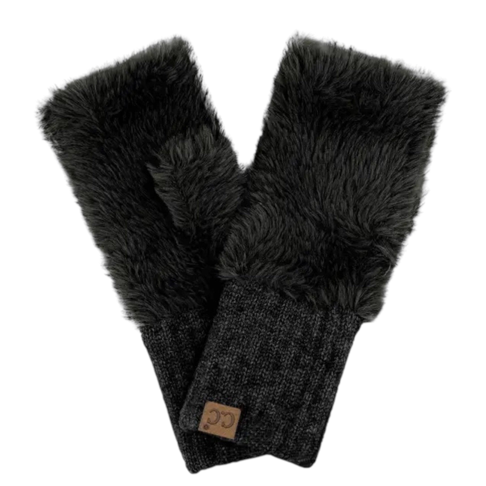 Black CC Plush Fingerless Gloves