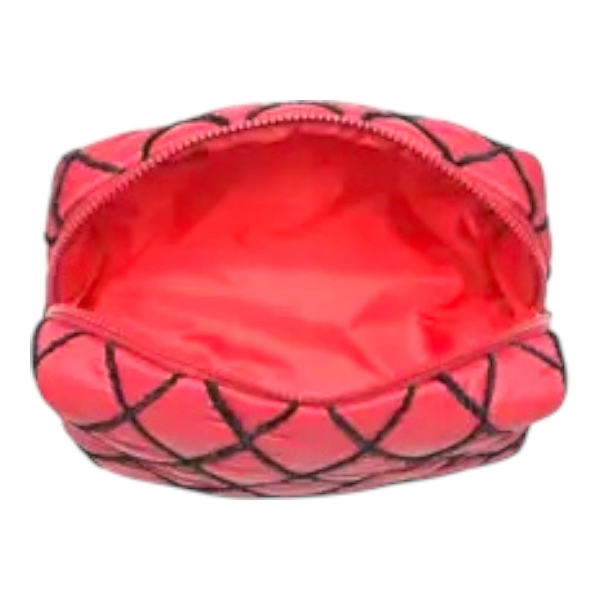 The Zinnia Cosmetic Bag effortlessly blends style and practicality. Featuring a unique quilted floral design, this spacious yet compact bag is perfect for storing makeup, toiletries, and small essentials. Its lightweight, durable construction makes it ideal for travel or everyday use. The secure zipper closure ensures your belongings stay safe, while the soft texture adds a luxurious touch. *Item Type: Cosmetic Pouch *Material: Nylon *Closure: Zipper *Exterior Details: Quilted Pattern *Interior Details: Fabric Lined