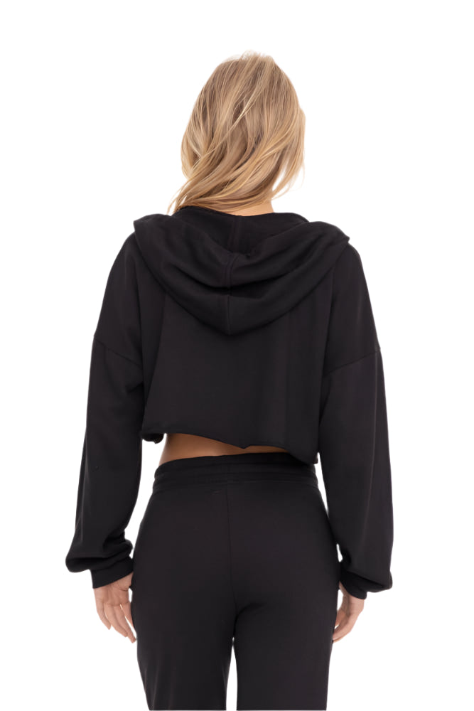 Black Crop Hoodie Zip-Up French Terry Sweatshirt