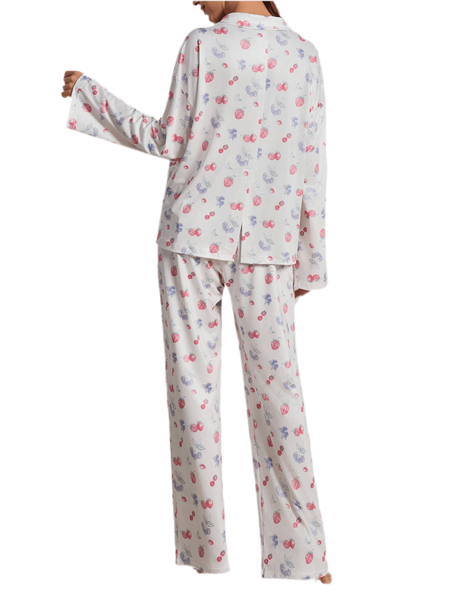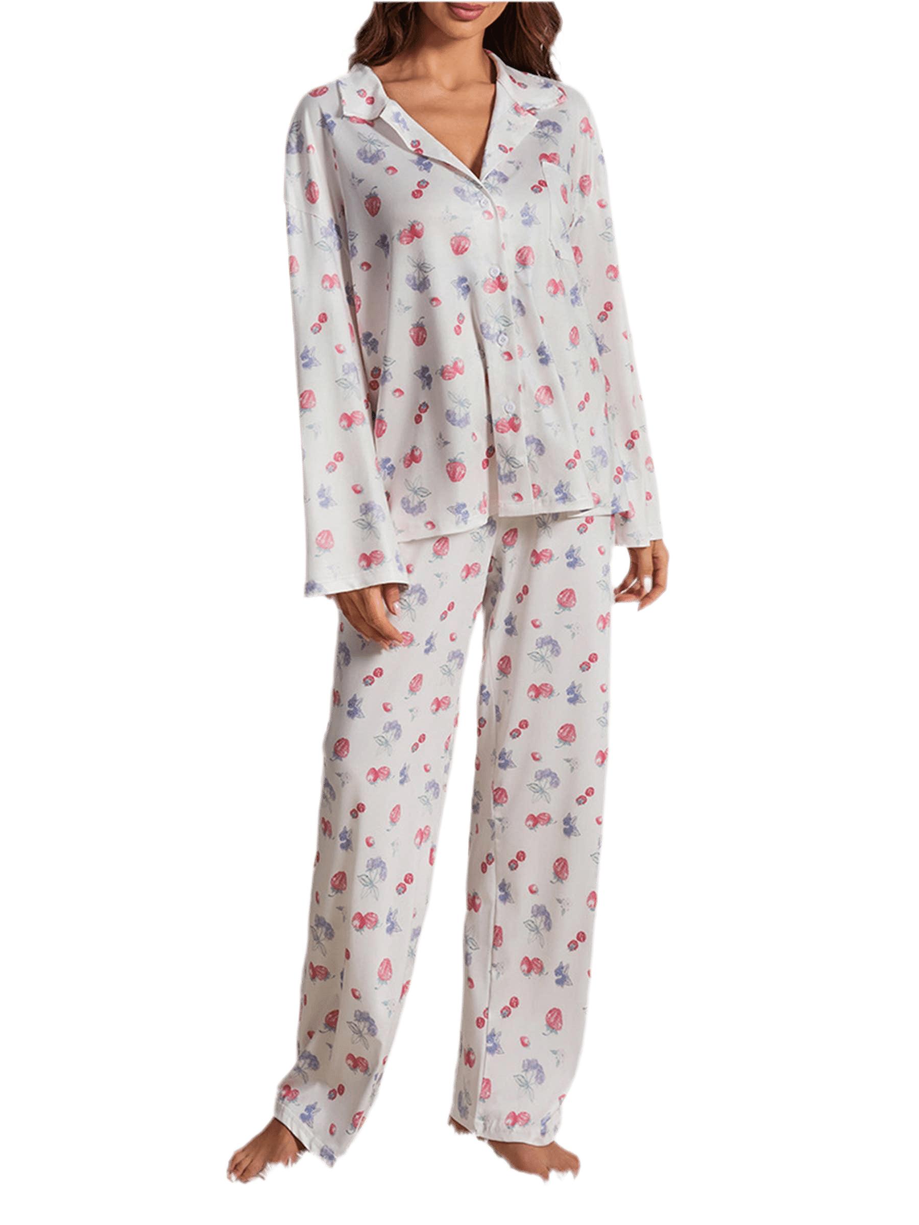Flower And Fruit Printed Wide Leg Pants Pajama Set