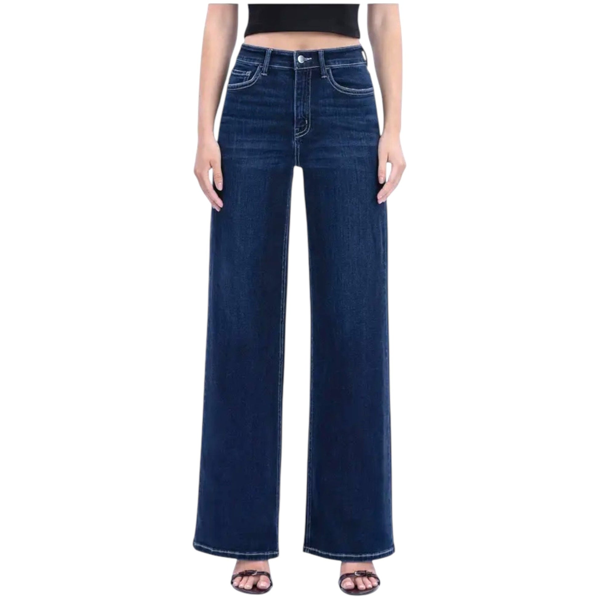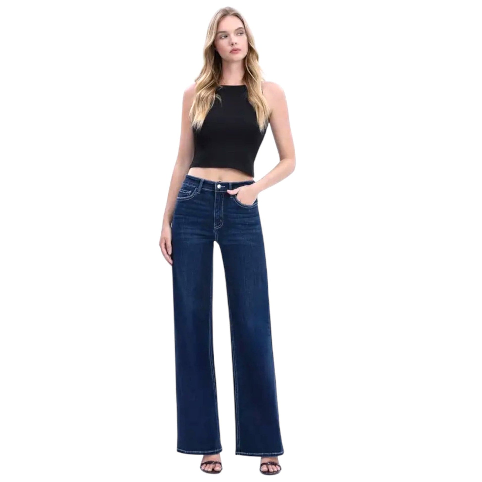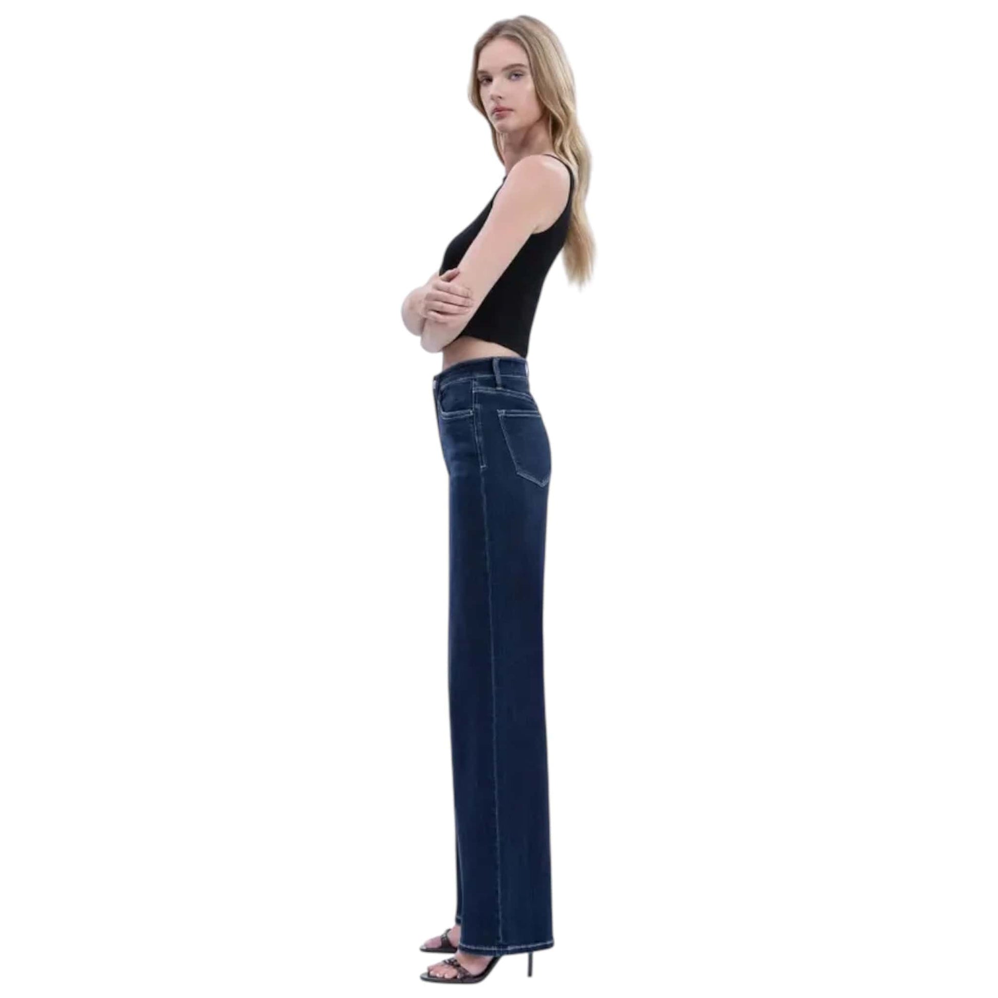 Mid Rise Dark Wash Full Length Wide Leg Jeans