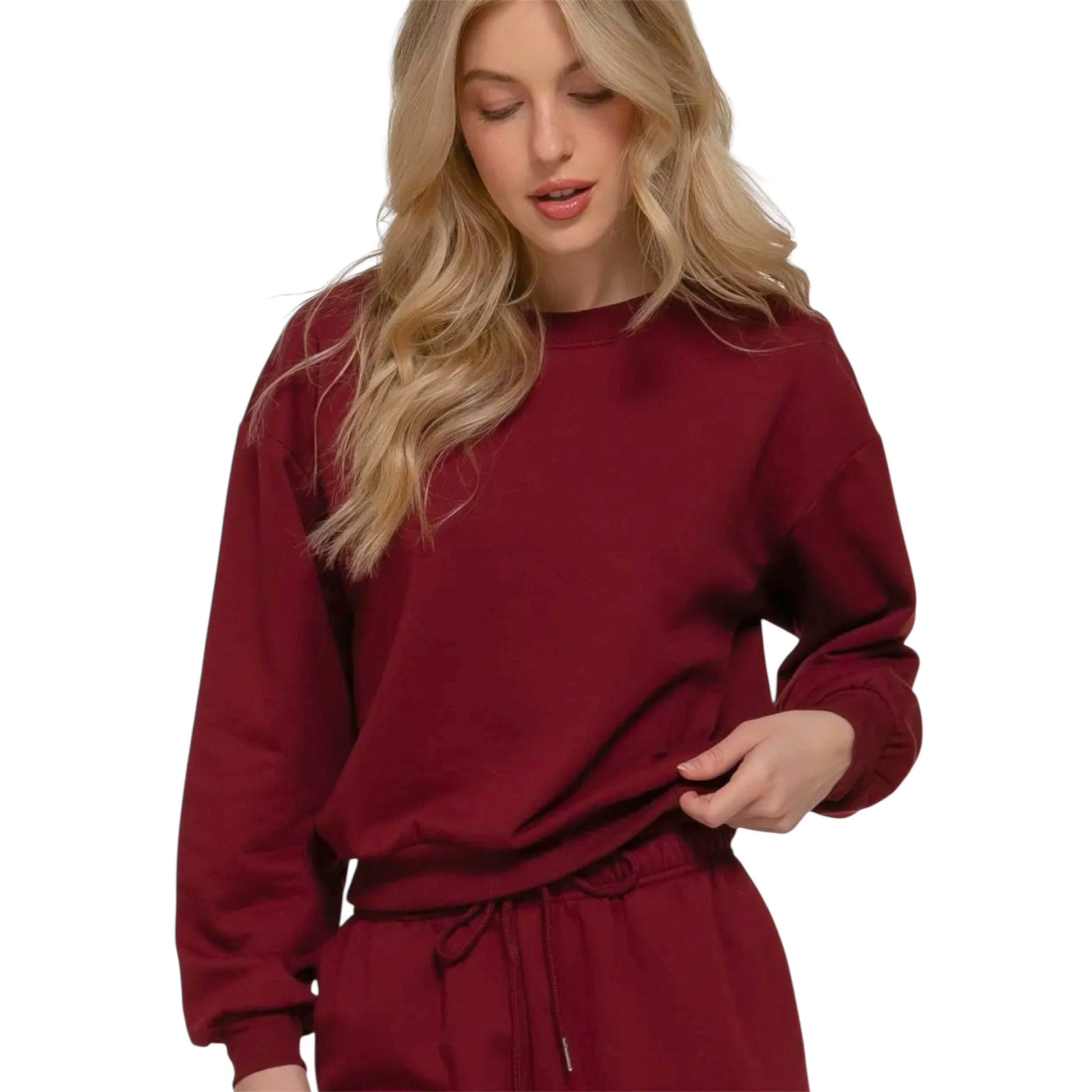 LONG SLEEVE ROUND NECK CROP SWEATSHIRT FABRIC: INNER BRUSHED TERRY 60% COTTON 40% POLYESTER