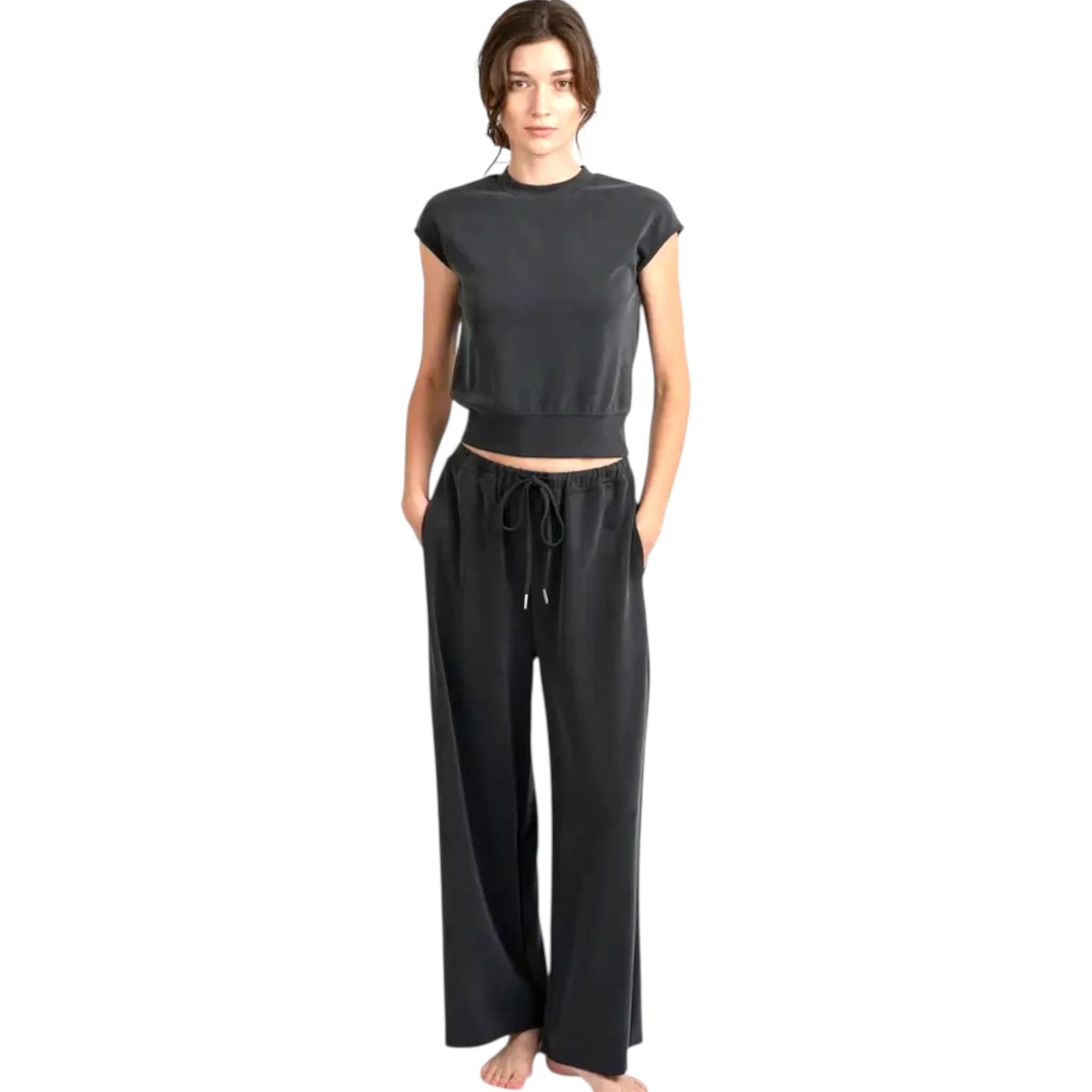 Relaxed wide leg silhouette for all-day comfort - Soft knit fabric with natural stretch and flow - Elastic waistband with adjustable drawstring - Full length with effortless drape - Side pockets for convenience - Perfect for lounging or casual outings
