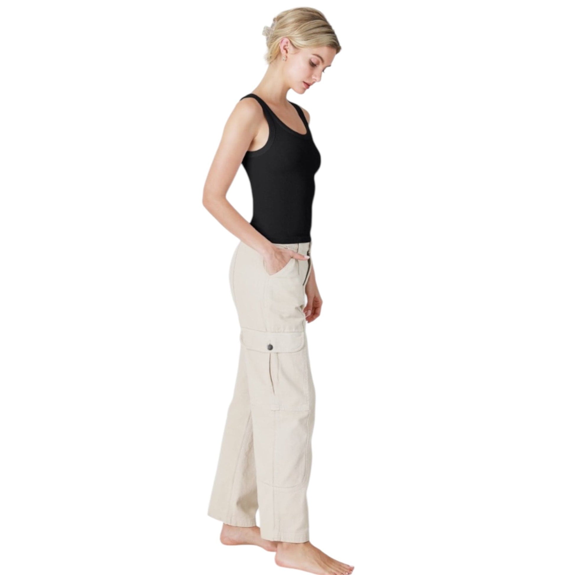 A reversible ribbed knit tank top that can be worn as a scoop neck or turned around to be worn as a crew neck. Fabric: 92% Nylon / 8% Spandex. Made in USA Best Selling Tank Top A must to add to your essentials wardrobe. One Size Fits Most