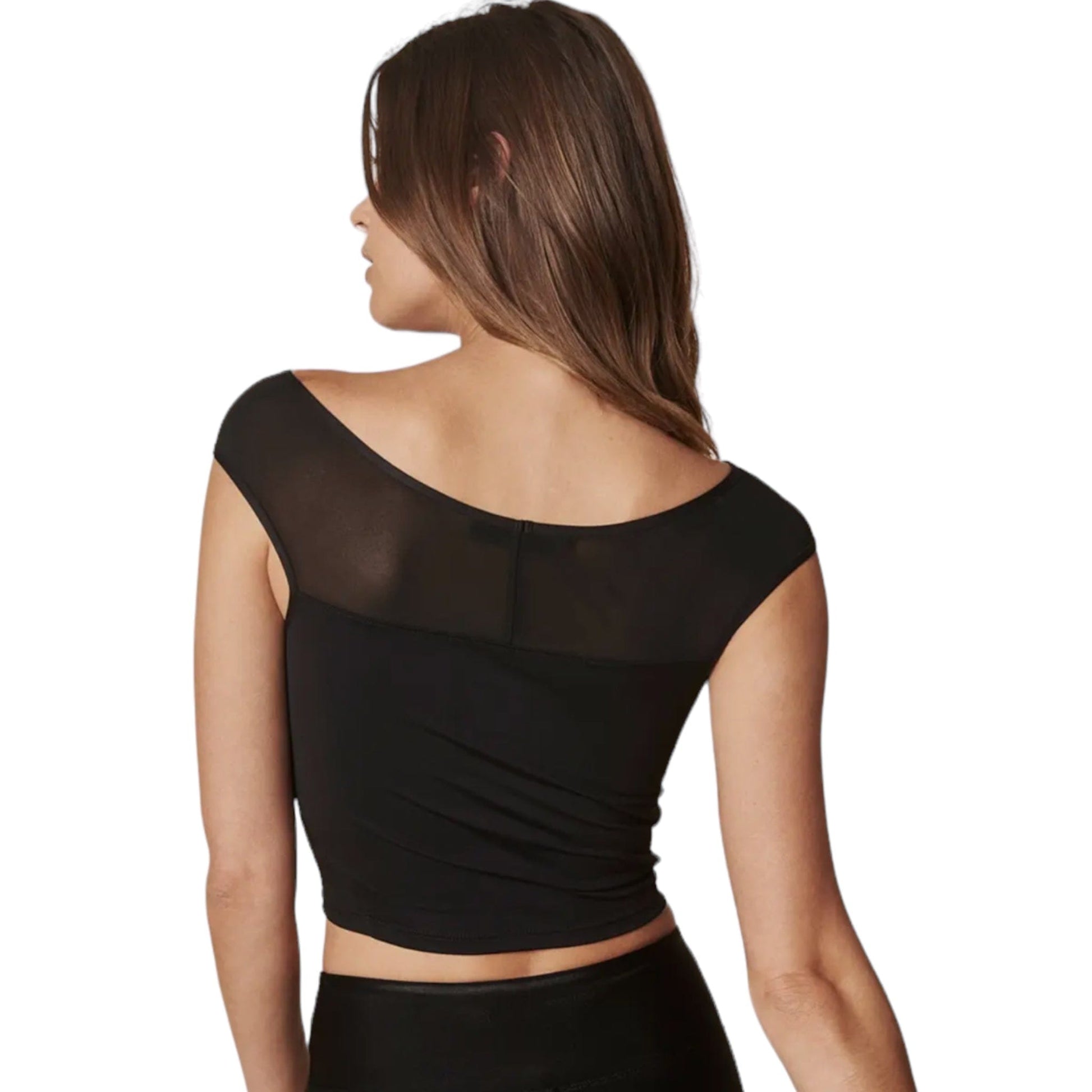- Cropped top in stretch fabric and mesh
